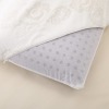 側地には本体の触感を損なわないニット素材を採用。ニットの内側にスライバーわたを挟み込むことで柔らかさを一層アップさせました。取り外してご家庭の洗濯機で洗える(ネット使用)ため、清潔にお使いいただけます。