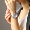 ベゼルに沿ってぐるりと囲むように贅沢に配したダイヤモンドが華やかに輝くラグジュアリーな一品。