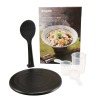 便利な自立式しゃもじと、内なべをおひつとして使用する時に便利な土鍋ふた、32メニューのレシピを掲載したクックブック付きです。