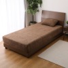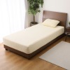 裏側は全周ゴム仕様なので、マットレスの上からすっぽりと覆うように被せ、後は伸ばして装着するだけ。簡単にピタッとフィットする便利な一品です。面倒なベッドメイクを楽に1回できれいに仕上げることができます。