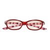 レンズ下部に小窓状のルーペ(拡大レンズ)が付いているのが特徴。それ以外の部分には度数を入れていないため、いちいち着け外しする必要がなく、遠くも近くも便利に見ることができます。また、レンズがはっきり分かれているので、歪みや揺れが少なく、使いやすくて慣れやすいです。
