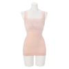 ブラジャー、補整シェイパー、レースキャミソールの3つが一つになったアイテム。体幹を意識しつつ、美しい姿勢を目指せるようサポートする仕組みを取り入れました。胸周りに細かな工夫をほどこすことで上半身全体を補整し、着圧によってすっきりした見た目を実現。毎日着用できるよう“楽さ”にもこだわっています。