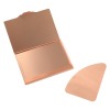 他の銅のマスクケースはただ金属が二つおりになっていて、その間に挟むようになっているのが多いのですが、これはボックスタイプですその上にプレートもついているのが独特です。でも持ち歩くとなると重くて、まだ使用していません。新品なら、銅の色が綺麗ですが、傷がついたり、変色が気になりますね。あとは、ケースの表面にシールを貼れるように付属になってますが、それをはると安っぽくなったり、銅のきれいな色が見えず高級感が損なわれそうでもあるので、貼るのを迷います。はったら剥がせないと思います。