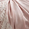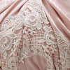 ヨーロピアン調のモアレ柄(木の断面の柄)のジャガード生地に、バラモティーフの重厚なギュピールレースをあしらった、エレガントなデザイン。