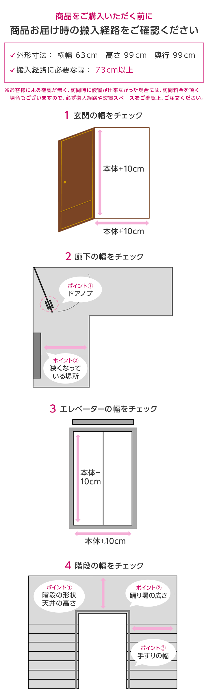 ★現地での商品以外の家具、家電移動は不可。3階以上の階段上げには別途料金が必要です。吊り上げなどの特殊対応および工事が必要な場合には別途設置業者にご相談のうえ、追加料金が発生する場合があります