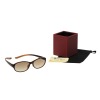 拭くだけで曇り止めができる眼鏡拭きと、巾着ケース、スタンドケースもお届け。スタンドケースは仕切りを取り外すことができるので、眼鏡スタンドとしてはもちろん小物入れとしてもお使いいただけます。