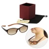 首に掛けられる便利な拡大レンズ付きサングラス! 屋外での読書やショッピングなどの際に重宝しそう。