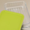 高さの低いフラットな密閉保存容器。食材を重ねずに保存でき、隙間収納もできる便利なアイテム。