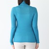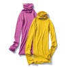ハイネックに設定したことで、折り曲げたりクシュクシュとルーズに着たりとさまざまな着こなしを楽しめるつくり。