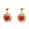 香瑚 18K 高知県産血赤珊瑚 ラウンドカボション スウィングピアス
