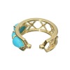ターコイズがセットされた正面と、メタルのラインワークで仕上げた裏面のうれしいリバーシブル仕様で、その日の気分やファッションに合わせてアレンジを楽しめます。