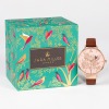 <サラミラーロンドン>より、ローズゴールドカラーの文字盤の上に輝く木を配置し、ブルーカラーとピンクカラーの鳥のつがいが身を寄せ、ロマンチックなひとときを過ごす様子を描いたウォッチです。