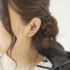 以前、こちらのイヤーカフを頂いた時はU字の形で着用時も外す時も痛みを感じず、付けた感じもしっくりきてとても気に入って使っています。こちらのタイプは点付けになるので落ちてこないように幅を狭く作ってあるのでどうしても着脱時に痛みが伴うように思います。付けた時も輪の部分が大きいのかなんとなく下がった感じになります。