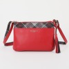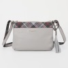 シボ加工をほどこしたレザーとタータンチェックをプリントしたポリエステル生地を組み合わせて使用。
