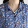 従来のブラウスは、60番手の綿を用いることが多いところ、本商品は細い80番手を使用して艶やかでしなやかな仕上がりに。