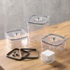 付属の電動バキュームポンプで容器内を真空状態にし、湿気・酸化・乾燥から守る事で、食材本来のみずみずしさ、風味、歯応え、見た目のおいしさを保つ事を目指しました。