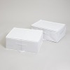 寝具用1個の上に衣類用2個を並べて、ぴったり積み重ねできるサイズ設定です。