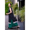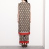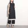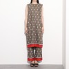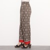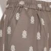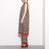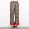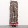 当ブランドオリジナルのプリント柄をほどこした、しなやかでツヤ感のあるポリエステルツイル素材を使用したロングチュニックとパンツのセットアップです。