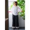 ウエストは総ゴム仕様にした、窮屈に感じにくいつくりに。