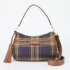 タータンチェックが好きで、大きめのバックを購入し3年ほど使用。小さめも欲しく、見た目の可愛さで購入しましたが、ファスナーの終わり部分が中に収納出来ないため、ショルダーベルトの付け替え部分と重なり、少し違和感があります。この辺りの改善を希望します。