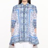シルクロードクラブ サンガネール柄 脇下がりデザイン シャツカラーブラウス