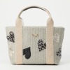 牛革を用いて、踊るようにあしらったハートのモティーフとのコントラストが素敵です。