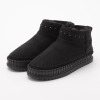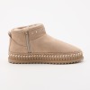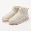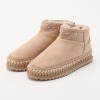外側にはフェイクスエードを、ライニングには密度の高いフェイクファーを全面に用いたムートン風ブーツ。