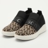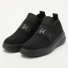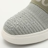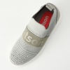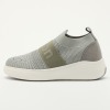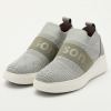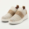 ニット素材の編み方に変化を付け、かかとやプルストラップに異素材を用いて、デザインのアクセントに。