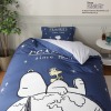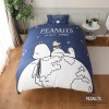 地球とスヌーピーのダイナミックなデザイン性が印象的な、掛けふとんカバーとピローケース。