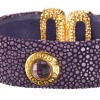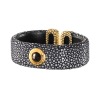 時空を超えた海の宝石と称されるガルーシャ(エイ革※スティングレイ)を使用し、多面体カットをほどこした天然石を配したデザインです。