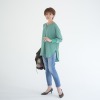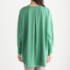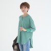 裾は前後差をつけ、脇線をラウンド状にカットしたシャツテール風のヘムラインで、長めの着丈でありながら重く見えないつくり。