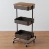 高さ調節のできるバスケットが3つ付いているので、用途別に分けて収納可能。