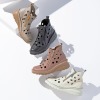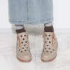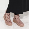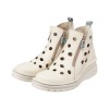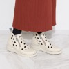 ドット柄パンチングをほどこしており、肌寒い時期はタイツやカラーソックスなどと合わせて、配色を楽しめそう。