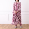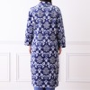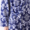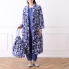 トップスと腹巻ボトムはすっきりと無地でまとめ、ドレス毛布と収納袋には、ハワイアンダマスク柄の手描き調のデザインを採用しました。