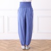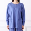 トップスは、ドルマンスリーブの動きやすい設計で、腹巻ボトムはウエスト部分に締め付け感の少ない、幅広のリブ編みを採用。