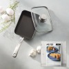 強化ガラス製のフタ付きなので、調理中の加熱を目視で確認でき、焼いてからの煮込み調理や、白米も1合まで炊くことができます。