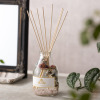 使い方もとても簡単で、オイルを天然石とドライフラワーが入ったガラス瓶に注ぎ、リードスティックを入れるだけで、手軽に本格的なアロマのフレッシュな香りを楽しめます。