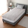 裏面には粒状のポリエステルの滑り止め加工がほどこされているので、敷き寝具を持ち上げてゴムをかける手間要らず!身体が触れる生地には、あったか吸湿発熱生地を使用。