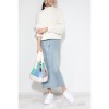 太さの異なる2種類の糸を用いてローゲージで編み上げたかわいらしいバッグです。