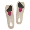 足裏の立体的な形状に沿わせるよう設計し、柔らかさと弾力のある素材を選んで、極力薄く仕上げるようこだわりました。そのため、年齢や靴のデザインを問わずに使いやすく、ファッションもしっかり楽しめます。起毛素材を使用しており、上品なカラーリングなので、靴を脱いだ時もおしゃれ。