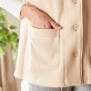 ふっくらとしたショールカラーとフレンチスリーブが気になる冷えをカバー。
