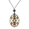 トップには程良い厚みのオーバルシェイプの水牛を用い、細やかなアールヌーボー調のカービングを丁寧にほどこしました。