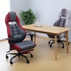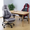 頭をやさしくサポートするヘッドレスト、お好みの位置に固定でき、腰への負担の軽減を目指すランバーサポート付き。