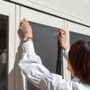 ポリエステルメッシュ生地にステンレスをコーティングした遮熱効果の高いネットで、付属の専用両面テープを使って窓やアルミサッシに簡単に取り付けできます。