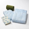 リバーシブルで使えるクール&ドライ敷きパッド、春から使える中わた入りのキルトケットは必ず入っています(ともにシングルサイズ)。