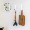 フックを2個使ってロール状のキッチンペーパーの両側をサポートすれば、キッチンペーパーをかけることも可能です。