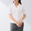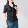 フリルデザインでありながら甘すぎない五分袖ブラウスです。