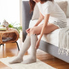 ゴム編みの締める特性を残して、一定以上に復元せず、ふくらはぎになじむから、長時間の着用でも圧迫感を感じにくいのです。