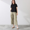 ゆったりとしたシルエットながら、いわゆるビッグシルエットとは異なり、非常に着やすいサイズ感に仕上げています。