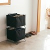 2段積み重ねて使えるおしゃれな収納バスケット。下段に収納したものも取り出しやすい構造です。
